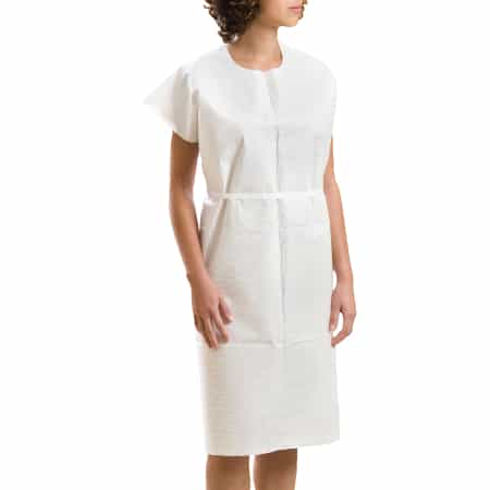 Patient exam gowns from Graham Medical consist of tissue bonded to a fluid resistant layer of polyethylene. Those layers allow these gowns to absorb fluid while simultaneously providing protection to your patients. Each one is both lightweight and reversible for comfort and flexibility. They also feature a front/back opening that is held closed with attached poly ties.
