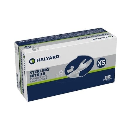 Sterling nitrile exam gloves from Halyard Health balance superior comfort, excellent fit, and reliable durability due to their special nitrile formulation. Each one has a boosted tensile strength that enhances the gloves protective barrier and allows for thinner gloves to help users retain maximum tactile sensitivity. They feature textured fingertips that improve grip and have beaded cuffs to minimize roll back in addition to increasing tear resistance.