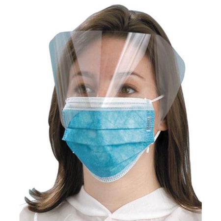 Eye Shield Procedure Masks from Henry Schein feature both soft earloops and an absorbable inner facing to make this mask very comfortable for extended wear. They are also fluid resistant (see Additional Information tab for more details). In addition, the optically clear shield is treated on both sides with antifog material. Not made with natural rubber latex. Comes in a bold, teal color.