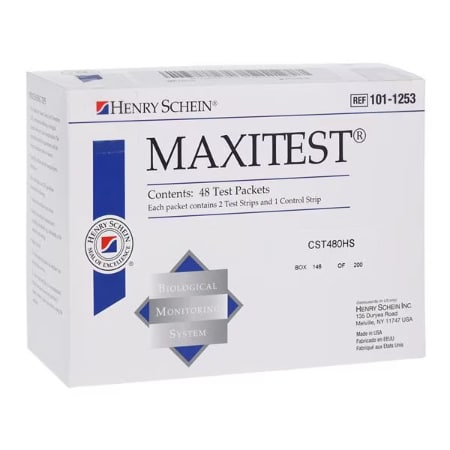 MaxiTest Biological Monitoring System from Henry Schein is for use with all sterilizers including steam, chemical vapor, dry heat, and EtO. The third-party documentation serves as tangible legal document where proof of sterility testing must be provided. Any test failures result in immediate and confidential notification, and all test results are available electronically.