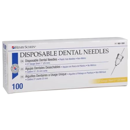 Plastic Hub Needles from Henry Schein feature softer, less aggressive hubs and sheaths. The rounded hubs provide gentler contact against cheek and gums, increasing patient comfort. These dental needles have shorter butt ends, tamper-resistant packaging and smooth hubs, removing ridges where blood can coagulate. They also have indicating marks on the hub for easy identification of bevel position.