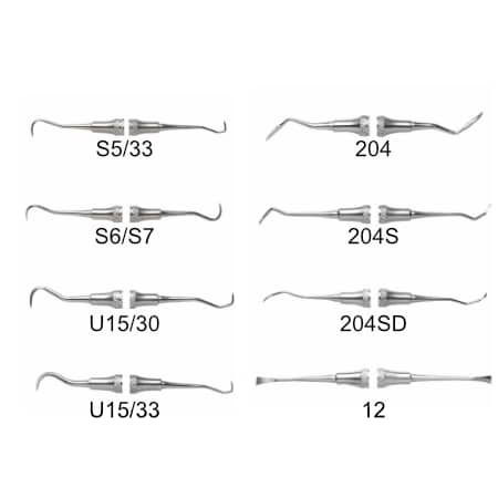 Specialty Scalers from Henry Schein are designed for the removal of supragingival calculus. Each one has two cutting edges that meet at a pointed tip with a back surface that is pointed, giving a triangular cross-section.
