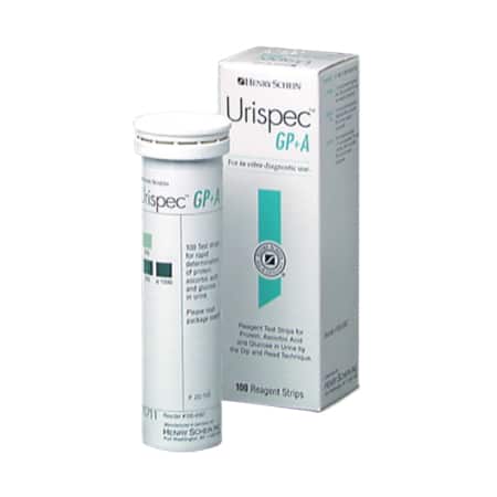 Urispec GP+A Urine Strips from Henry Schein are ideal for metabolic and kidney monitoring as well as diabetic monitoring. They test for protein, ascorbic acid and glucose. Each strip reliably delivers results in as little as 60 seconds. These strips are intended for either visual read or for use with the Henry Schein Urispec Plus Urinalysis Reader. Room temperature storage required for best results.