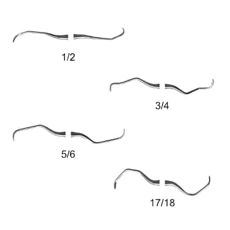 - Double ended 1/2, 3/4, 5/6 and 17/18 Langer Curettes