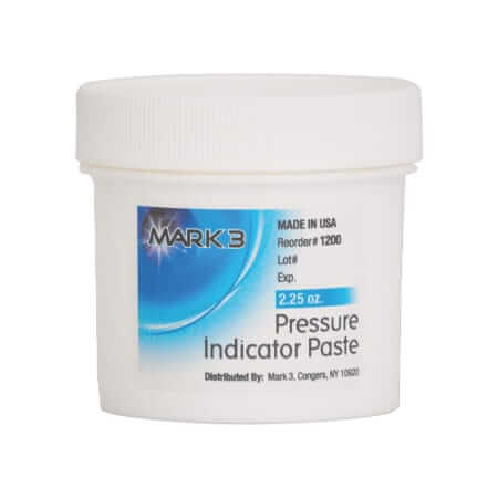 Mark3 brand PIP pressure indicator paste from Cargus International is ideal for detecting high spots when fitting or adjusting dentures. This ready-to-use paste highlights problem areas on dentures allowing you to quickly resolve any instances of either discomfort or displacement. It also remains constant in both high and low temperatures and is free of excessive bulk that can distort dentures.