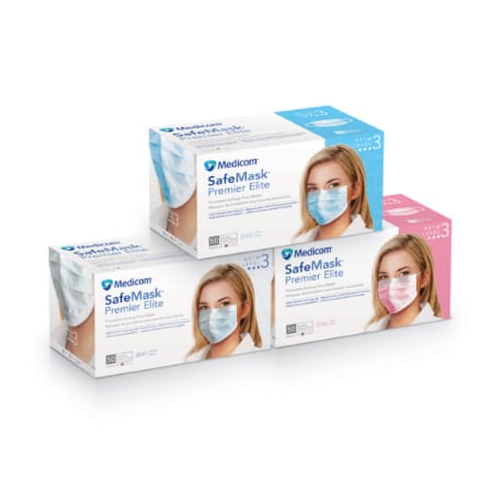 SafeMask Premier Elite Earloop Masks from Medicom are high-barrier (ASTM Level 3) for examining or treating high-risk patients and for procedures involving high levels of spray, splatter, moisture and airborne particles. Smooth, stretchy, ultrasonically sealed earloops both prevent irritation and allow easy removal with a lower risk of self-contamination. An adjustable nosepiece provides a comfortable, personalized fit. The shingle pleat design prevents fluid pooling as well as cross-contamination. Each mask features non-woven layers that will not lint, tear or shred.