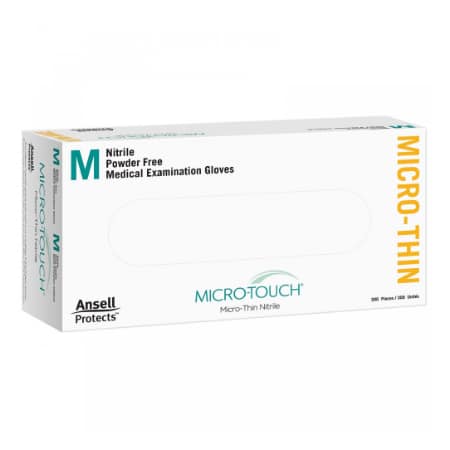 Micro-Touch Micro-Thin nitrile exam gloves from Ansell deliver superior comfort and fit due to their thinner construction. This also results in increased dexterity and tactile sensitivity making these gloves ideal for more delicate procedures. Each glove features textured fingers that enhance grip in both wet and dry conditions. And with 300 gloves per box, users reduce paper waste as well as save inventory space.