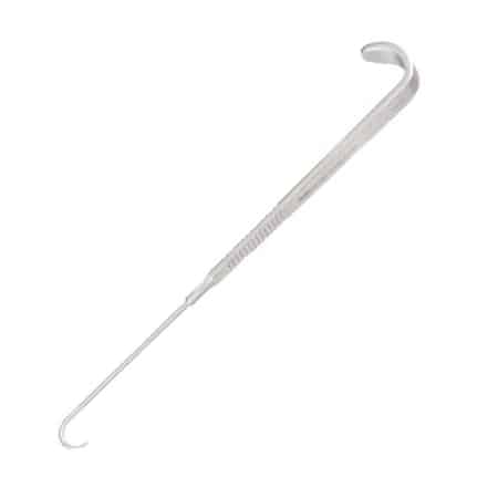 Miltex News Tracheal Hooks from Integra LifeSciences are designed to hold cartilage, allowing for an unobstructed surgical site during tracheostomy. Each one consists of a thick, curved holding hood on one side with a sharp hook located on the other end (facing opposite directions). These instruments are crafted from German stainless steel.