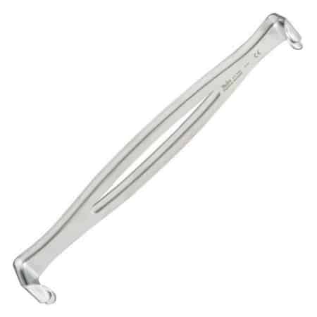 Miltex US Army Retractors from Integra LifeSciences are double ended with a fenestrated handle. Each one includes 90° angled blades with a slightly curved, rounded lip. These retractors are commonly used to expose the surface layers of skin.