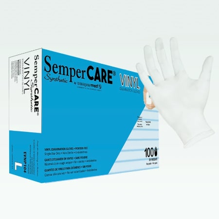 SemperCare Synthetic vinyl exam gloves from Sempermed are designed to provide a low cost solution for your offices more mundane tasks. These affordable gloves are durable, yet comfortable and are free of most common allergy causing materials. Each one features a smooth surface that helps to maximize tactile sensitivity while still delivering a positive grip.