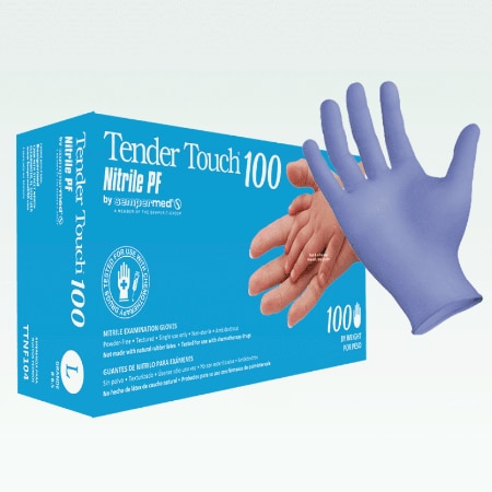 Tender Touch 100 nitrile exam gloves from Sempermed deliver the right combination of fit, feel, tactile sensitivity, strength and value. Each one features a chlorinated interior for easy donning and textured fingertips to ensure a superior grip in wet or damp conditions. These gloves have passed testing for use with select chemotherapy drugs and Fentanyl, proving to be an effective barrier against both.