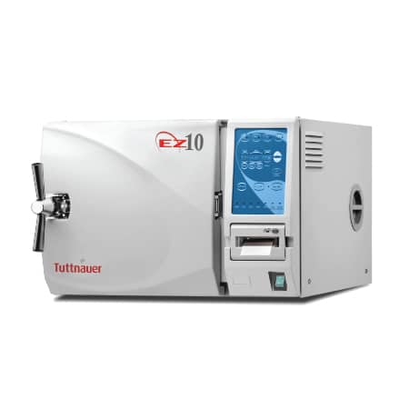 Tuttnauer EZ10 Fully Automatic Autoclaves offers the simplicity of one touch design to fulfill all your sterilization and drying needs. This fully automatic autoclave fills, sterilizes, exhausts and drys at the touch of a button. This time-saving, closed-door product sterilizes and dries your equipment in no time.
