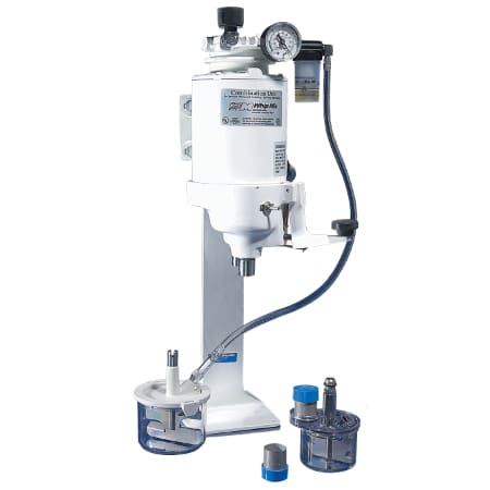 The Vacuum Mixing Combination Unit from Whip Mix is equipped with two drive shafts which rotate at different speeds. The faster speed (1,725 RPM) reduces the mixing time that is required for small quantities (90 gram or less) of investment. The slower speed (425 RPM) is for all mixing purposes, with or without vacuum.