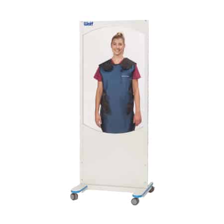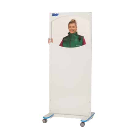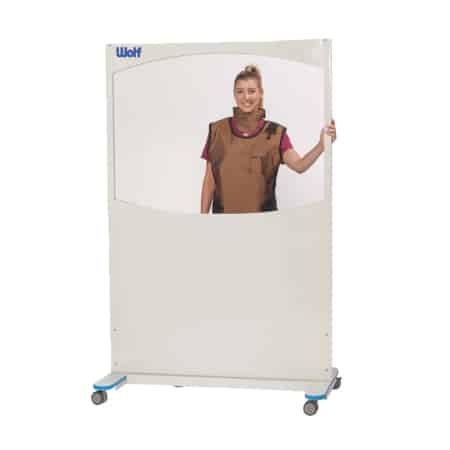 Wolf X-Ray OptiClear Lead Acrylic Mobile Barriers provide a full-body shield for one or two individuals, and can be easily repositioned or moved from room-to-room. The optically clear, lead-plastic viewing panel provides exceptional visibility and 0.5mm Lead Equivalent Protection. The opaque lower panel provides 0.8mm Lead Equivalent Protection. The shatter-resistance and durability of the Clear Lead ensures long life under heavy use. Locking casters allow the barrier to be moved or repositioned easily, and then locked in place to avoid creeping.